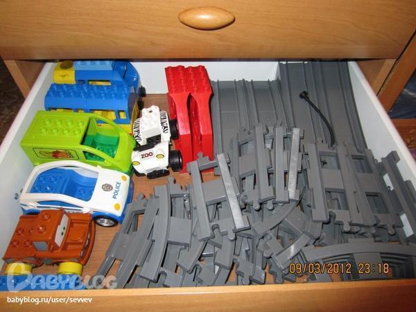 Здравствуйте, Юля. У нас есть маленькая ж/д Лего Дупло, дарили дочке на НГ. Плюс к ней дополнительные рельсы и мост. Вот так вот выглядит в собранном виде (извините за качество фото