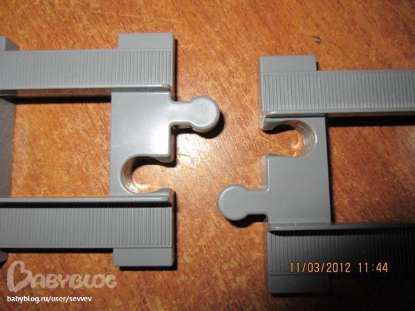 В большой ж/д таких пластин 2*4 всего 5 штук. Если я правильно прикинула, то Вам для укрепления рельс понадобится 32 пластины. Но на самом деле попробуйте просто ж/д поиграть, если ее не пытаться поднять, то все достаточно хорошо держится.