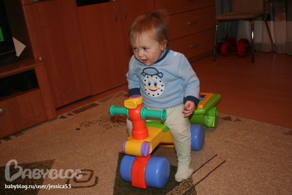 Игрушка качественная, мы с ней хорошо поиграли, ей было интересно, но как только она начала хорошо ходить надобность в ней пропала, поэтому лучше купить что-то более долгоиграющее напирмер столик с игровой панелью или мягкую качалку.