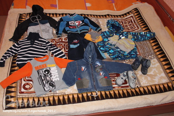 Курточка рейма тек,кофточки,толстовочки,джинсовый куртец,обутка котофей на баечке(после экко оденем,экко кроссики),шапочек бы сюда не мешало прикупить ещё..