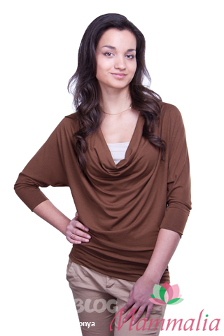 Я предпочитаю, в основном, водолазки, хотя есть несколько и просторных вещей. Очень нравятся мамалиевские кофточки и футболки. Вот, например: