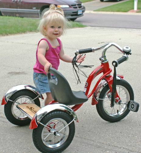 Тут не столько проблема в размере колес сколько в силе ребенка их крутить... Если велик тяжелый, то им будет очень тяжело... Я тож хочу 4х колесный'... Думаю уже месяц... Но стала склоняться к 3х колесным" которые полегче. Их и самой таскать легче, если ребенку надоело ... И самому малышу удобно. А с 3х -3.5 модно уже нормальный покупать :)