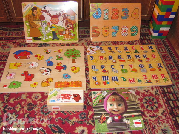 мы тоже деревянные как показано ниже уже давно собираем..прримерно в год купили а правиильно вставлять начал в вашем возрасте наверное..сейчас уже не интересно потому что очень быстро и не сложно собирать..купили картонные настоящие только крупные...это пока сложно..но очень хочет И с нашей помощью подоллгу собирает.-.разбирает..собирает--разбирает...