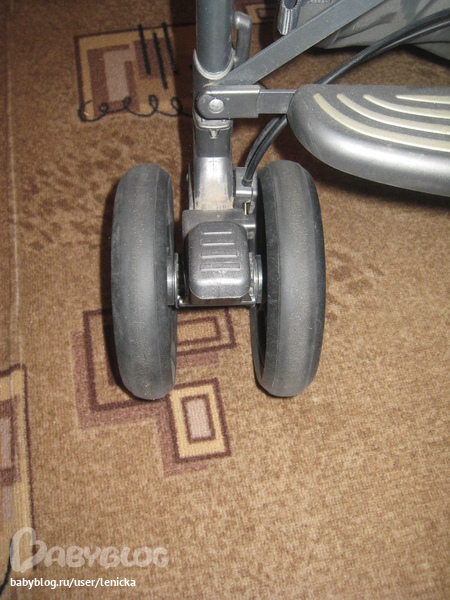 Еще одно из передних колес стало плохо фиксироваться. Надо там провести некие манипуляции, только тогда оно закрепится. А в последнюю прогулку я заметила, что задние колеса стали разъезжаться домиком во время движения((((( Это меня вообще убило. Коляска то не перегружена!
