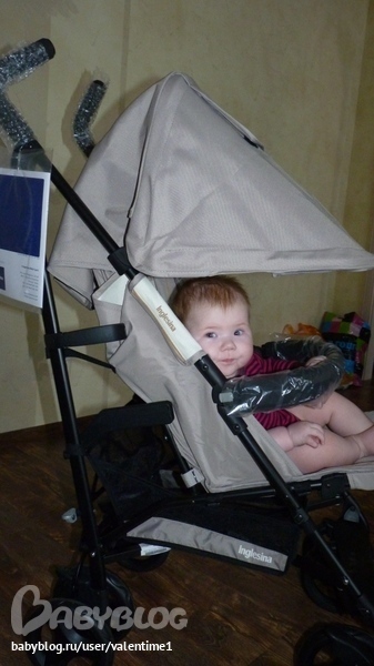 Что порадовало: качество материала и механизмов, огромный кап с окошком, наличие бампера (модель 2012), и спинка, расскладывающаяся почти горизонтально, управляется одной рукой легко и непринужденно, колеса отличные (задние с аммортизацией, передние поворотные с фиксацией), для роста 1,7м и 1,9м ручки расположены идеально.