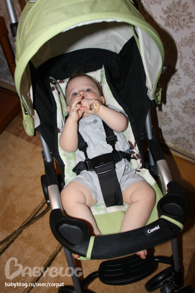 - Вот так коляска выглядит с ре (нам 11 мес, вес ок. 10,5, рост, точно не знаю, пусть будет 75). В описании коляска рекомендована до 25 кг, но я надеюсь мы с таким весом обойдемся без нее :))).