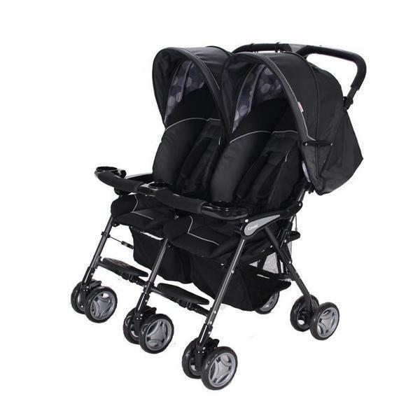 - Колеса. Сдвоенные, передние поворотные с возможностью фиксации. Тормоза на каждом заднем колесе. Расстояние между колесиками большое, так что застревать ничего не должно. Коляска крутится вокруг оси.