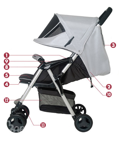 Очень легкая конструкция позволяет легко транспортировать коляску. 11.