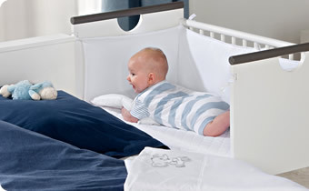 Мы долго так спали. Просто в обычной кроватке снимали боковушку.