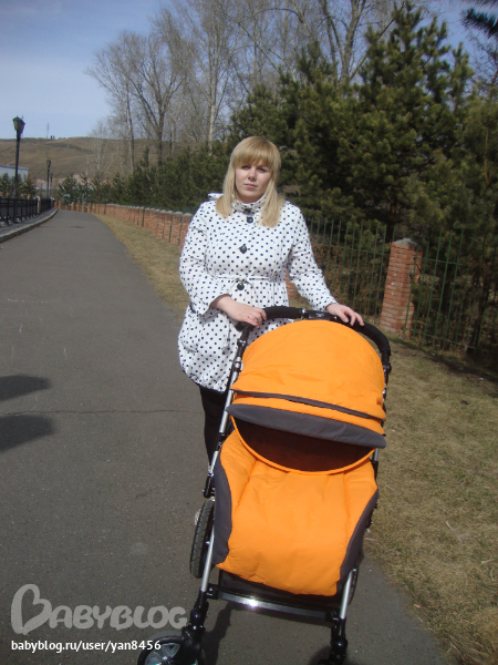 Коляски (только вопросы и выбор)Приобрела я её всё-таки,нашла в нашем городе.В общем я довольна.Катаемся на ней неделю.Вес 10.8,большой кап,мягкий матрасик,идет хорошо,легка в управлении,ручка перекидывается(этой функцией правда пользовалась 2 раза)и фиксируется по росту,приятная расцветка,хоть и хотела другую,вместительная корзина для покупок,плавно меняется положение спинки,легко складывается одной рукой,шагает по ступенькам не плохо(трансформер конечно лучше=) ).Говорили про люфт ручки-есть,но совсем небольшой,капелюська самая,может мне повезло=)А теперь недостатки:при перекинутой ручке не заехать на бордюр и не надеть чехол,т.к. в чехле нет отверстий для ручки,но я эту проблему быстро решила,как-видно на фото.Сползает матрасик-тоже не проблема,решили пришить к нему пуговки,рядом петельки,и пристегивать.Всего ОДИН карман,для меня это самый важный недостаток=)))И подставка под ноги не понятная,странно расположена.Больше ничего не выявлено.Девочки,в коляску я влюбилась,очень довольна своим выбором,пока не пожалела о покупке=)