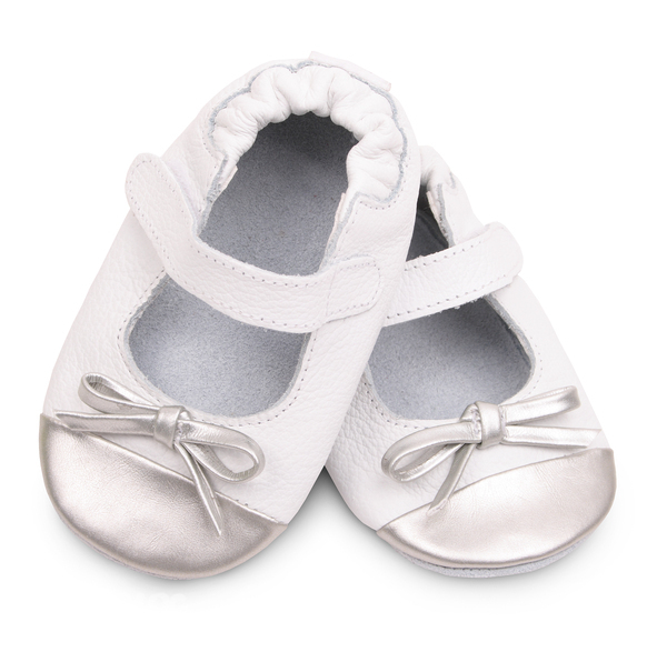 На первый шаг надо обязательно обувь с жестким задником и небольшим каблучком, по крайней мере так врачи рекомендуют. В магазинах эта обувь так и называется "на первый шаг". Хотя, конечно, у нас были пумы модные из Италии, в которых мы ходили иногда на выход )))