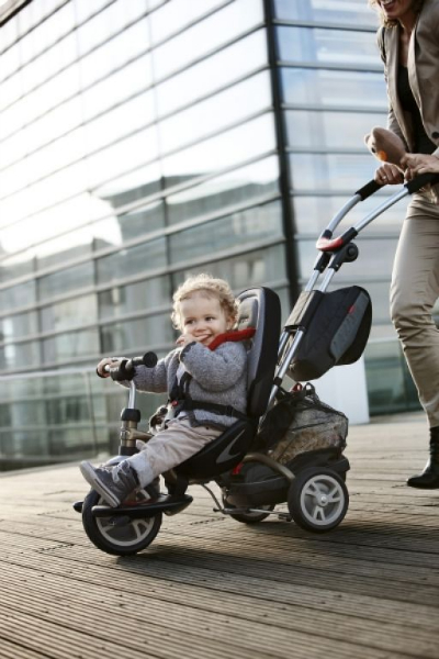 Wir haben das im Mai 11 neu erschienene Dreirad gekauft und vorher uns allerhand andere angeschaut. Auf ein vergleichbares Dreirad z.B. Smarttrike muss man nochmal 100 € zusätzlich drauf legen, aber die Qualität ist eine ganz andere. Es fährt stabil, hat keine Kippneigung, lässt sich super schieben auch auf Waldwegen, alles ist gut verarbeitet. Unser 13 monatiger Sohn der wegen motorischer Retardierung erst spät laufen und frei sitzen können wird, sitzt da absolut aufrecht drin, kann sich prima umschauen und wird von der Anschnallung gut gehalten. Unser 3jähriger ist aber auch ganz wild drauf, mit ein paar Griffen kann man Lenkersperre und Leerlaufautomatik und Fußstütze entfernen und das Dreirad fährt prima, auch leise in der Wohnung, geht auch rückwärts gut zu fahren. Insgesamt also eine lohnenswerte Anschaffung finden wir. Ist eine echte Alternative zumn Buggy und passt auch gut in einen kleinen Kofferraum, da man Stange und Sitz umklappen kann.
