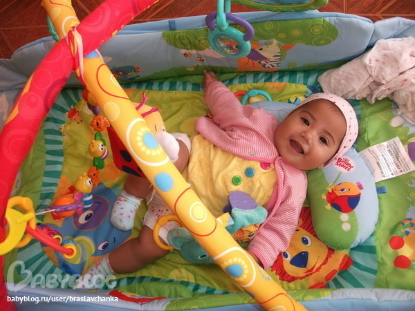 У нас был коврик фирмы Брайт Стартс 'Удивительное сафари'. Больше всего в этом коврике нам понравилось то, что он с бортиками. Мы не прогадали, потому что слишком уж мы вёрткие были, а бортики создавали безопасность. Как подросли, стали отстёгивать бортики и с удовольствием уже играли на коврике сидя))) Очень удобная вещь - эти бортики. Обратите внимание на такую модель развивающих ковриков)))