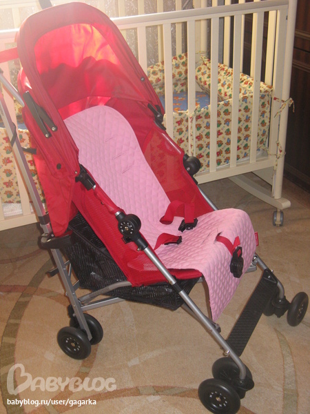 Ну еслиб там подножка была я бы от нее не отказалась)) но вообще в целом удобно вроде, сидит с удовольствием, даже дома просто так то и дело просит разложить ее. У нас вот такая - розовая...