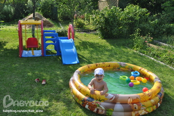 Классно! Бассейн у нас тоже есть, а на последней фото это батут? И еще вопрос: ребенок часто на батуте играл? а на горке с качельками?