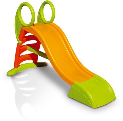смоби. она не совсем маленькая, но и не большая. нам сейчас 2 года, как раз. на следующий год будет мала. но в ней есть плюс - можно ставить в надувной бассейн и вверху есть соединение для шланга - водичка будет течь с горки.
