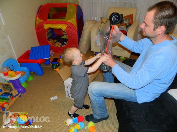 Привез папа прямо перед нашим укладыванием спать)) Так что сон отложился почти а час)