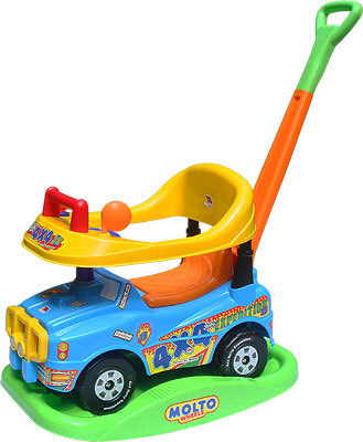 у нас такая только без бортиков и родит ручки.. хорошая машина и высокая. Самая ббольшая машина их всех которые я видела в магазинах..Сын еще на всю ступню не достает до пола..Она бывает еще с подножками для реб.. и музыкой...
