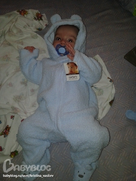 . А потом пошли прогуливаться с маман по улице) И....открылся в городе магазинчик с вещичками картерс и прочей такой штукой....минус 3 тысячи в моем бюджете. Столько это все, конечно, не стоит...но я влюбилась. Еще медвежья шапочка легкая и погремушка.