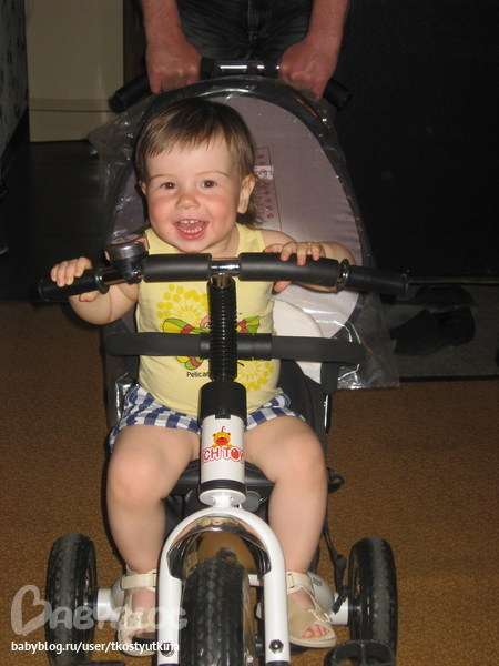 отличный! ну и по весу то же самое, что и у нас... представляю как таечка рада!:) Колька тоже сутки не слезал с него дома, благо, тогда еще дождь был целый день, накатался и накрутился его за день дома...