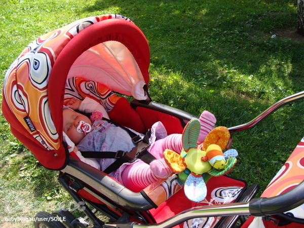 ребенок в прогулке, видно по бокам щели :((((