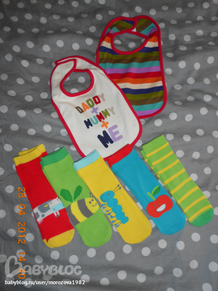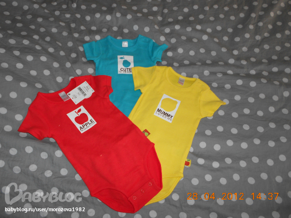 я только на первый месяц этим заморачивалась, со второго месяца одеваю через головку, не вижу в этом проблемы. Там вещи все очень хорошие, качество отличное, сегодня стирала их все вместе, не линяют! Швы обработаны хорошо, ткани все приятные. Цвета очень насыщеные. У меня в дневнике есть еще хвастик оттуда. Там кардиган полосатый есть, обожаю его! Один недостаток у него, все постоянно разглядывают нас