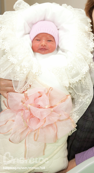 Ой, правда, у вас очень красиво завернут) И бант красивый получился) как на подарке прям;)) Это обычная атласная лента? Нам наверное не везет с "кулечками".. Племянника выписывали так его вообще не видно было в конверте.. он вниз сползал все время... И дочку тоже умудрились плохо завернуть...