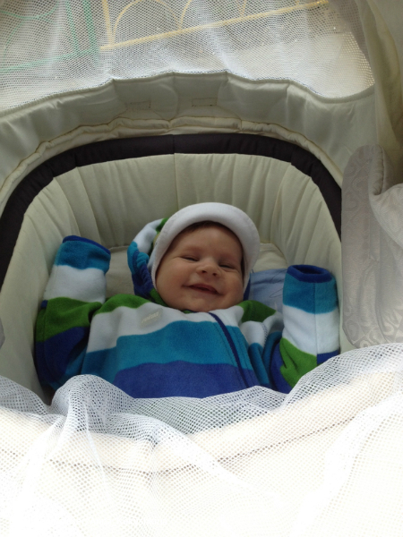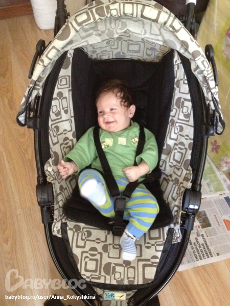 6. Платошке коляска нравится, даже эта маленькая переноска