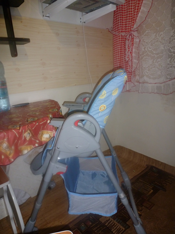 Просто мы его ставим к нашему столу большому, когда на кухне, а когда я его кормлю в зале то я тарелочку ставлю себе и его кормлю если я ее на столешницу поставлю тарелки будет крындец, думаю когда сам кушать будет начинать и будет делать не с нами за столом то мы ее обязательно поставим, тем он мне и удобен что сейчас столешницей мы не пользуемся а стопор между ножек есть =)