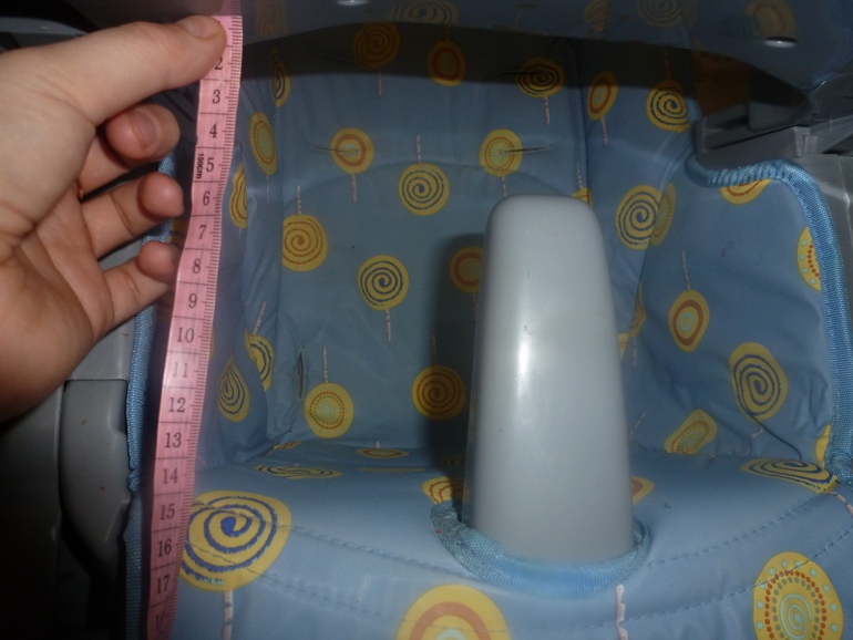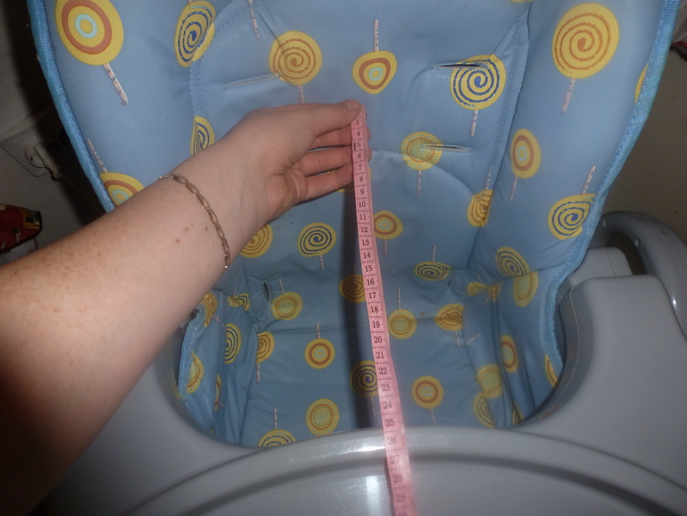 15 см высота от столешницы до сидушки, нам до сих пор высоковата, сложенно байковое одеяло и если без голопопим попке комфортно