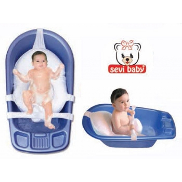 Мы купили обычную ванночку, и к ней матрасик-гамак Sevi baby - безумно удобная вещь!!! Запросто купаю малышку сама. Ребенку оч нравится!