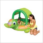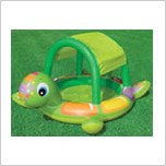 купили черепаху,два раза надули,на второй раз пошел шов на шее(голове)самой черепахи!Мой совет,купите самый обычный,которой если по шву пойдет,не жалко будет,а то бассейн целый,а из-за всех этих лапок,хвостов прохудился((
