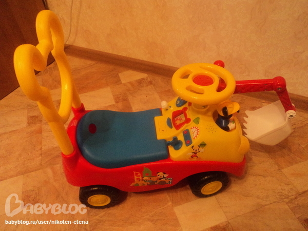 Дочка катается каждый день! На машинке еще много функций - музыка, свет! Мелодий куча, поэтому она включает и танцует))) Мы взяли каталку-экскаватор, ковш функционирует, ребенок и с ним занимается) Колеса поворачиваются рулем, но не сильно, в принципе нас это устраивает) Ой, вы из какого города? Знаете, с ребенком особо не походишь по магазинам, поэтому я практически все беру в интернет-магазинах! И огромный выбор каталок на www.wildberries.ru . Мы там и купили! Есть раздел - фирма kiddieland!!! Выбор огромный сейчас!!! В общем, советую! Потраченных денег на эту штуку не жалко! Она нам и помогла, кстати, начать ходить, потому что дочка ее возила перед собой и топала)))