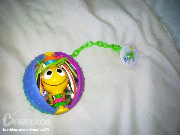 Купили такой, когда ребенку было месяцев 6, очень понравился дочке, периодически и сейчас (в 1г 3м) играет с этим шариком) Зеркало внутри конечо же небьющееся.