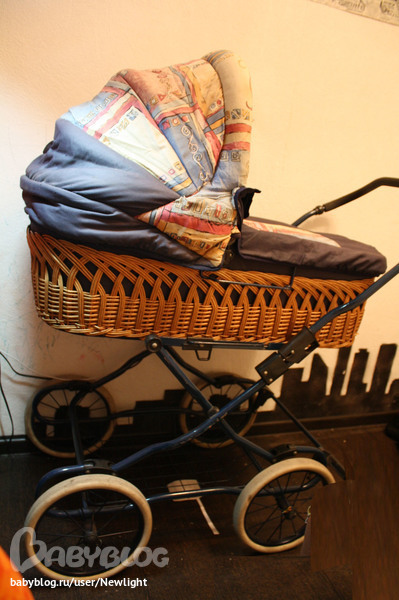 восстановленная перешитая/перекрашенная старая коляска. чисто для дома вместо кроватки (удобнее - перемещаться по комнатам можно)
