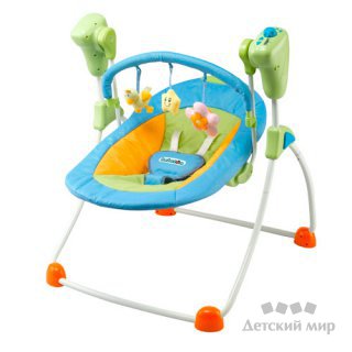 В качелях предусмотрен выбор скоростей качания, которые регулируются автоматически по мере увеличения веса ребенка. В комплект входит съемная дуга с развивающими игрушками, которая займет и развлечет малыша. Дугу легко снять, когда придет время сна или кормления.