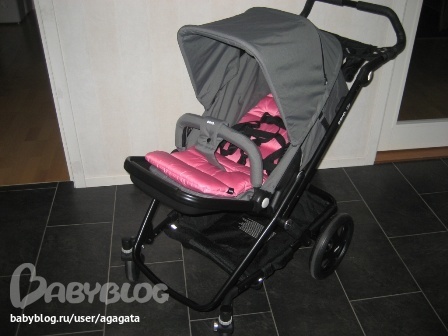 У нас такая коляска. Ничего в ней хорошего нет...самая обыкновейнешая...капюшон однослойный темный изнутри, малышу как то в нем темновато, люлька маленькая, сидячий блок маленький, в зиму очень тесно.Наш малыш крупный родился, пришлось еще коляску покупать. Зимой колеса застревают, волочила коляску за собой. Из плюсов очнь нравится сумка и багажник удобный и ручка еще высокая, тоже удобно так как рост мой 178 см, а муж вообще высокий. У нас комплектация 3 в 1 еще с автокреслом.Оно нравится хорошее удобное. до 13 кг, удобно в магазин брать на шасси поставил и поехал. Мы покупали в Финляндии примерно за 1000доларов, на мой взгляд не стоит этоих денег. Есть варианты намного удобнее, красивее и комфортнее для малыша! Хотя если ребенок небольшой и в лето, то норм. Ктасти арматизация у нее на 3...трясет на кочках.