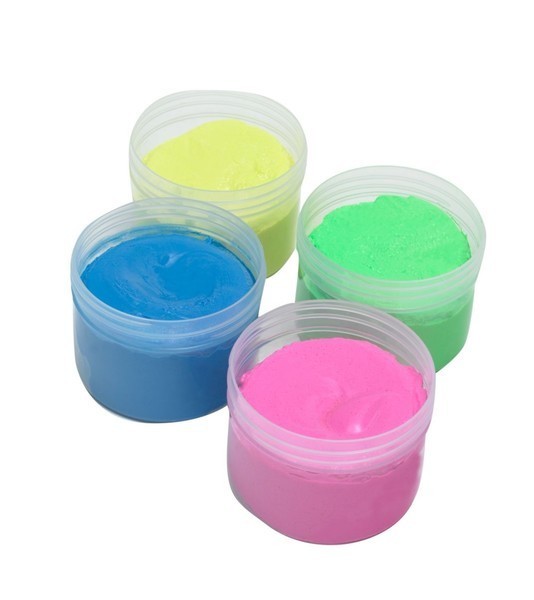 Взяли более дорогой вариант (за 4 штуки 670 рублей) в непрозрачных бутылях сверху под крышкой присоска так что в магазе посмотреть консинсенцию не удасться - на сайте не нашла - цвета не неоновые, а более естественные: желтый, зеленый, красный, синий. Ну, что сказать...они безусловно жиже, но цвет получается такой прозрачный, что назвать это нормальной краской рот не открывается. Т.е. для того, чтобы нарисовать круг мне пришлось 3-4 раза палец окунать в краску, когда рисунок высох выглядело это как желтый кружок местами бледный, местами желтый. Разочарована....