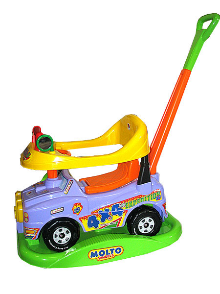 использовали и с дугами и с ручкой и просто как машину) на руле кнопка с музыкой, под сиденьем -место для игрушек. 2 года этой машинке уже и хоть бы хны.