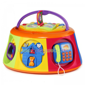 С вопросом, покупать его или нет, я даже писала отдельный пост, т.к. дорогой. Но всё таки купили, тем более удачно в одном интернет-магазине со скидкой 50 %. На сегодняшний день это одна из самых наших дюбимых игрух. Лампочки мигают, музыка играет, всё крутится-вертится, пищит, трещит и т.п. Вообщем хорошая игрушка. На кроватку не вешали, стали играть сразу на полу как с игровым столиком. Чуть позже Тимофей начал опираясь на него учиться вставать)))) Вообщем многофункциональная вещь! :)