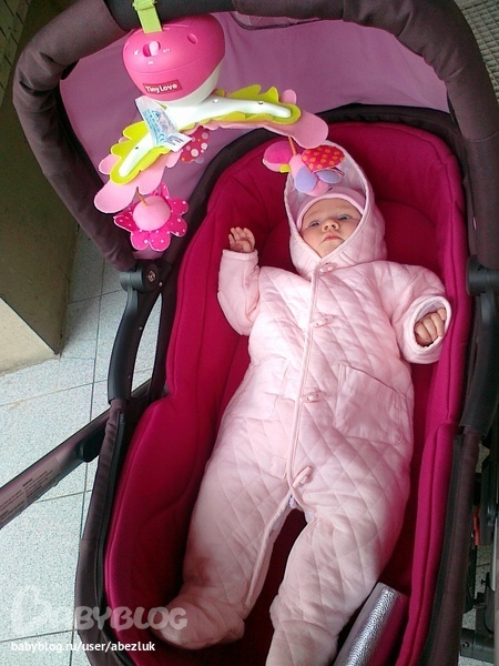 Тоже хотела заказать своей первый розовый. Подскажите какой размер вы сейчас носите (только сейчас увидела что у нас дочки в один день родились, моя сейчас 59 см) ?