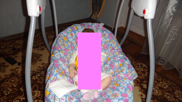 У нас качели мама ру" и когда мы положили малыша, то подбородок получился сильно прижат к груди. Это очень опасно, нарушается ритм дыхания!!! Даже с пледиком или пеленкой! Поэтому мы их отложили и вернулись к ним недавно нам 4,5 месяца. Сейчас гораздо лучше, но все равно под моим присмотром.
