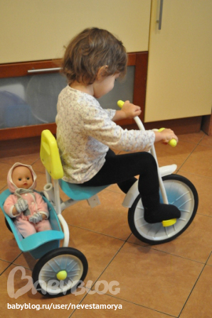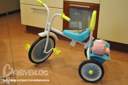 Поддерживаю! Купили в самом начале лета, заказывала с завода. Пока велик был дома, ребёнок научился на нём кататься, в год и 9 мес. Собственно я так и расчитывала, что сынок будет сам кататься. Тогда стали брать на улицу. Когда на улице будет совсем грязно и слякотно, помоем и снова будем кататься по квартире.