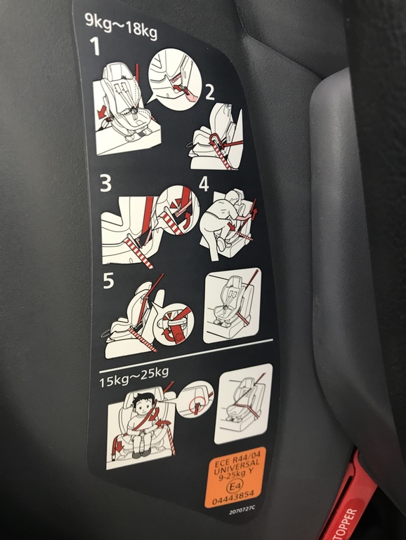 После 3-х лет ребенок крепиться автомобильным ремнем. Как показано в инструкции