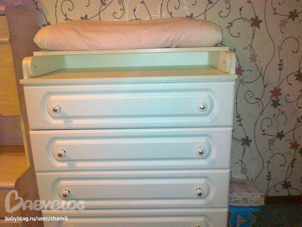Да и кровать детская белая Италия, а комод наш отечественный, и по качеству не хуже Италии. Решили съэкономить пока лялька маленькая, а потом поменяем со временем.