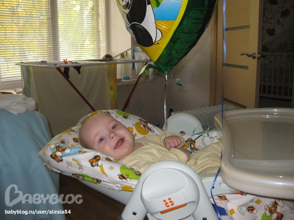 Ой, какая у вас клёвая расцветка стульчика! Кстати мы сейчас тоже любим с шариками играться :)