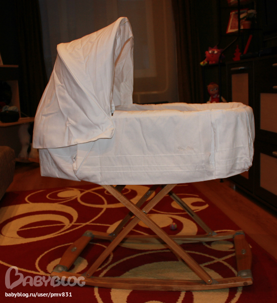 Радует качество, каждая мелочь - все продуманно. Шасси хоть и б\у, но нескрипучее ни капли! Шикарная амортизация, просторная и теплая коляска. А уж люлька-качалка из нее - супер! Небольшая, сдержанная (минимум рюшей всяких), компактная, а главное - практичная, т.к. и после полугода ее можно вовсю использовать.