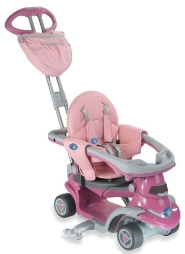 Есть такой у подруги, малыш для велика маловат (1.2), ноги не достанут все равно педальки. А в машине он отлично катается. Единственный недостаток, на мой взгляд, это низкий "клиренс", бордюры сложно объехать. А плюс, трансформация, ручка уберется и подросший малыш сам сможет кататься на нем, толкаясь ножками.