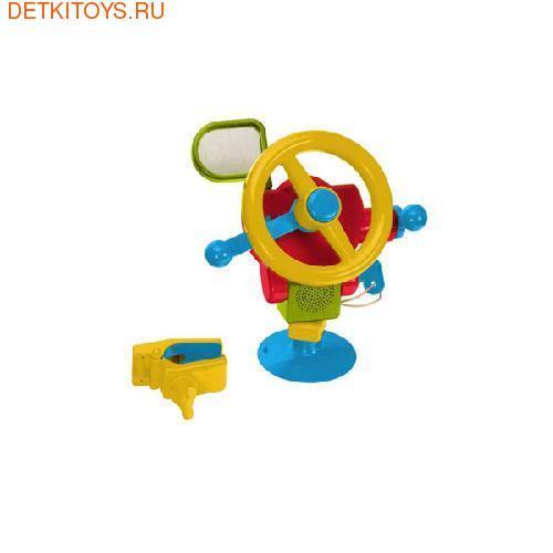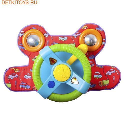Руль от Taf Toys. Три звуковые кнопки, две из них мигают. Трещит при повороте руля. Нам нравится.