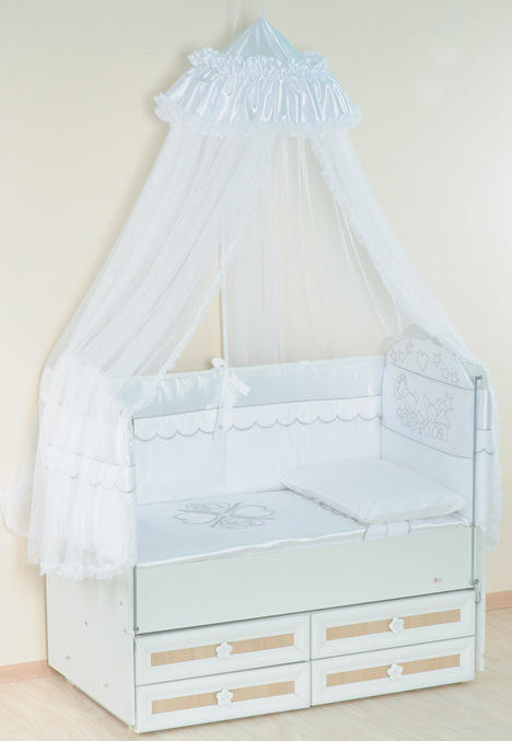 Купила в итоге набор Друзья. По качеству очень понравился, борты состоят из 2 половинок: изголовье и половинки боков по сторонам. Чехлы не съемные. Вышивка аккуратная, качество швов и материалов нареканий не вызывает. Борты пока не стирала.